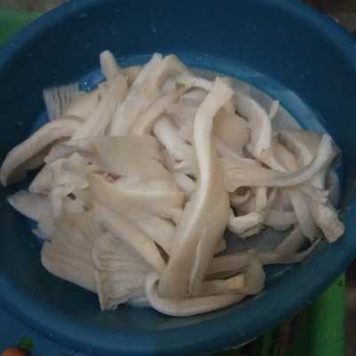6 siung bawang merah iris halus. 2 sdt lada bubuk. 250 gram jamur tiram suwir-suwir.
